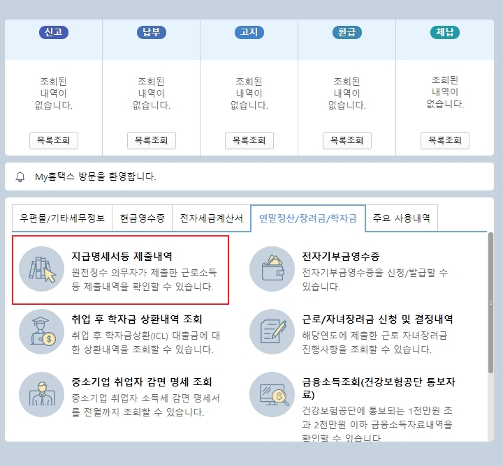 홈텍스 원천징수영수증 발급